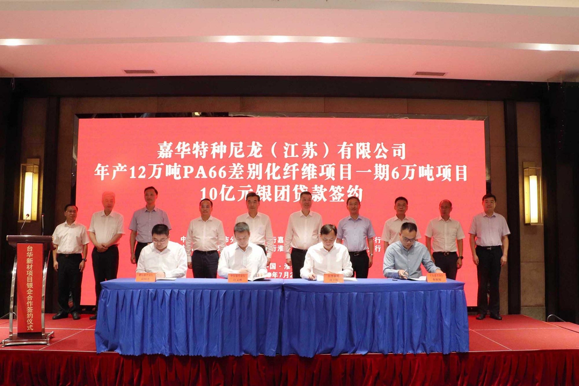 7月21日,在江蘇省淮安市,臺(tái)華新材與中國(guó)銀行、工商銀行、建設(shè)銀行、民生銀行等7家金融機(jī)構(gòu)組成的銀團(tuán)簽訂貸款協(xié)議書,總授信金額28億元,支持臺(tái)華新材綠色多功能錦綸新材料一體化項(xiàng)目(一期)的建設(shè)。
