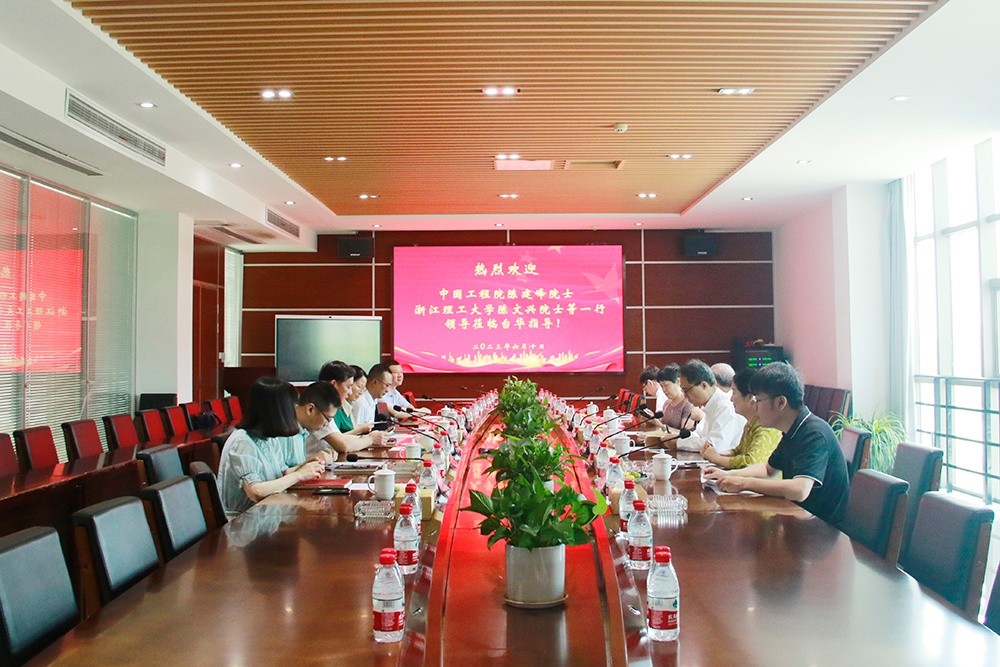 6月10日上午10點,中國工程院黨組成員、秘書長陳建峰院士率隊來我司開展“化纖產業綠色低碳發展”情況調研,隨行調研的還有浙江理工大學的陳文興院士(校長)和王秀華、陳世昌兩位教授。公司總裁沈衛鋒、化纖事業群高玲總經理、李聰彥副總、董事會秘書欒承連、總裁辦總監劉小陽、馬訓明經理參加接待。