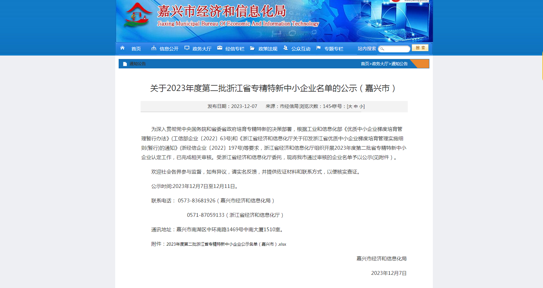 近日,嘉興市經(jīng)濟和信息化局發(fā)布了《關(guān)于2023年度第二批浙江省專精特新中小企業(yè)名單的公示(嘉興市)》,浙江臺華新材料股份有限公司和臺華高新染整(嘉興)有限公司上榜。