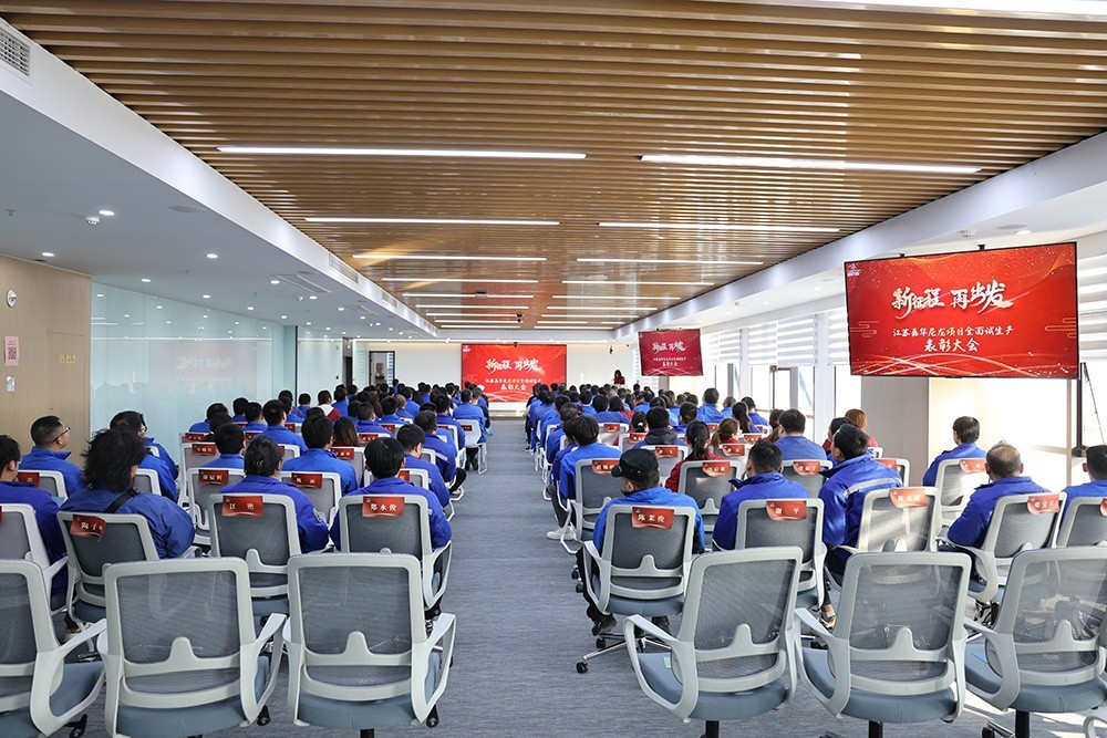 11月30日下午3點(diǎn)30分,在江蘇再生行政樓會(huì)議室隆重舉辦了“江蘇嘉華尼龍項(xiàng)目全面試生產(chǎn)表彰大會(huì)”,慶?!芭_(tái)華新材綠色多功能錦綸新材料一體化項(xiàng)目”一期“江蘇嘉華尼龍項(xiàng)目”建設(shè)完成,全面投產(chǎn)。集團(tuán)沈總裁,嘉華經(jīng)營(yíng)班組成員、受表彰的同仁,以及嘉華生產(chǎn)、運(yùn)營(yíng)相關(guān)同仁,員工家屬代表參加了本次表彰大會(huì)。