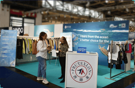 本次展會中,嘉華尼龍作為 Bodywear Forum 專區唯一的纖維品牌贊助商參與展示。Bodywear Forum聚焦功能內衣與貼身運動服裝領域,匯集行業前沿材料與趨勢應用。在該專區中,嘉華重點展示首創化學法海洋再生錦綸纖維PRUECO OCEAN。