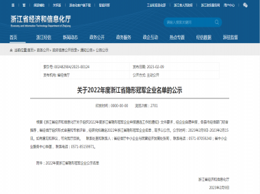 喜報!臺華新材獲評“浙江省隱形冠軍企業”