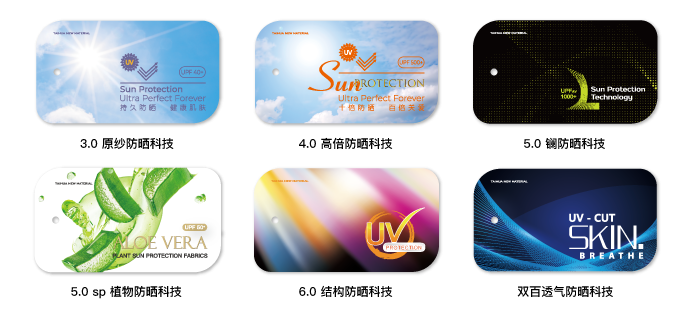 防曬科技的創(chuàng)新技術(shù)已從1.0「涂層加工」進(jìn)階至6.0「原紗構(gòu)造+組織」,防曬性能極大提升的同時(shí),面料更加輕薄通透,還可復(fù)合多種功能性于一身,打造全方位呵護(hù)效果。