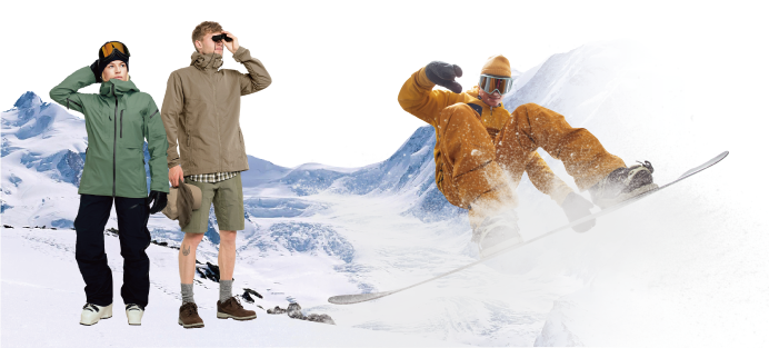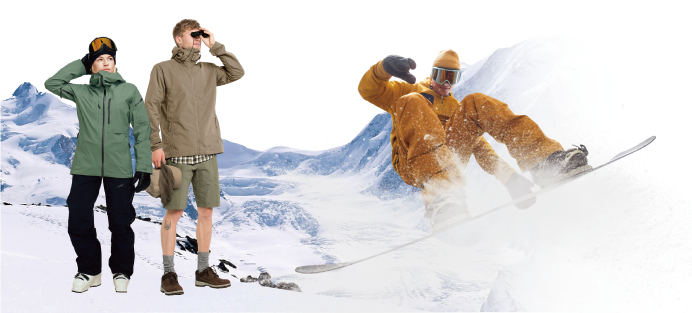 總結山野戶外探險及城市輕戶外不同服裝需求,通過聚酰胺纖維、氨綸彈性纖維等原材料開發防水透濕、防風、透氣、紫外線防護、細菌防護、吸濕速干等功能性面料,滿足極限運動和戶外穿搭的安全保障。同時,面料顏色飽滿且具備優秀的色牢度,質感挺闊有型。